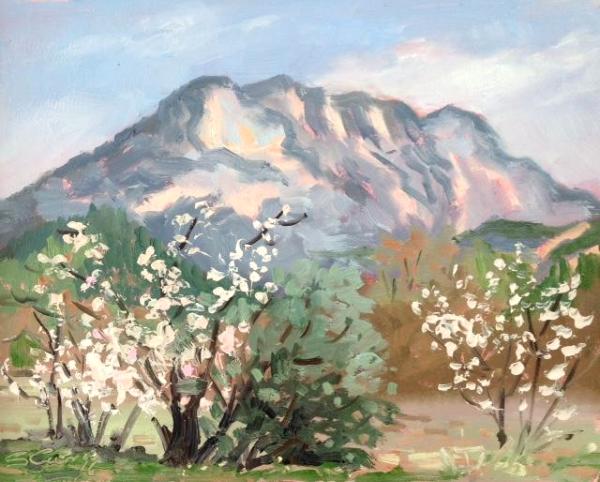 Cezanne's Mountain Aix en Provence, oil on wood, 8x10 ins
