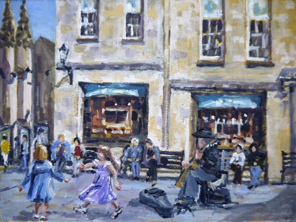 Abbey Church Yard, Bath, 6x8 ins, oils