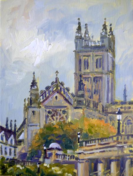 Evening Light, Bath Abbey, 6x8 ins, oils
